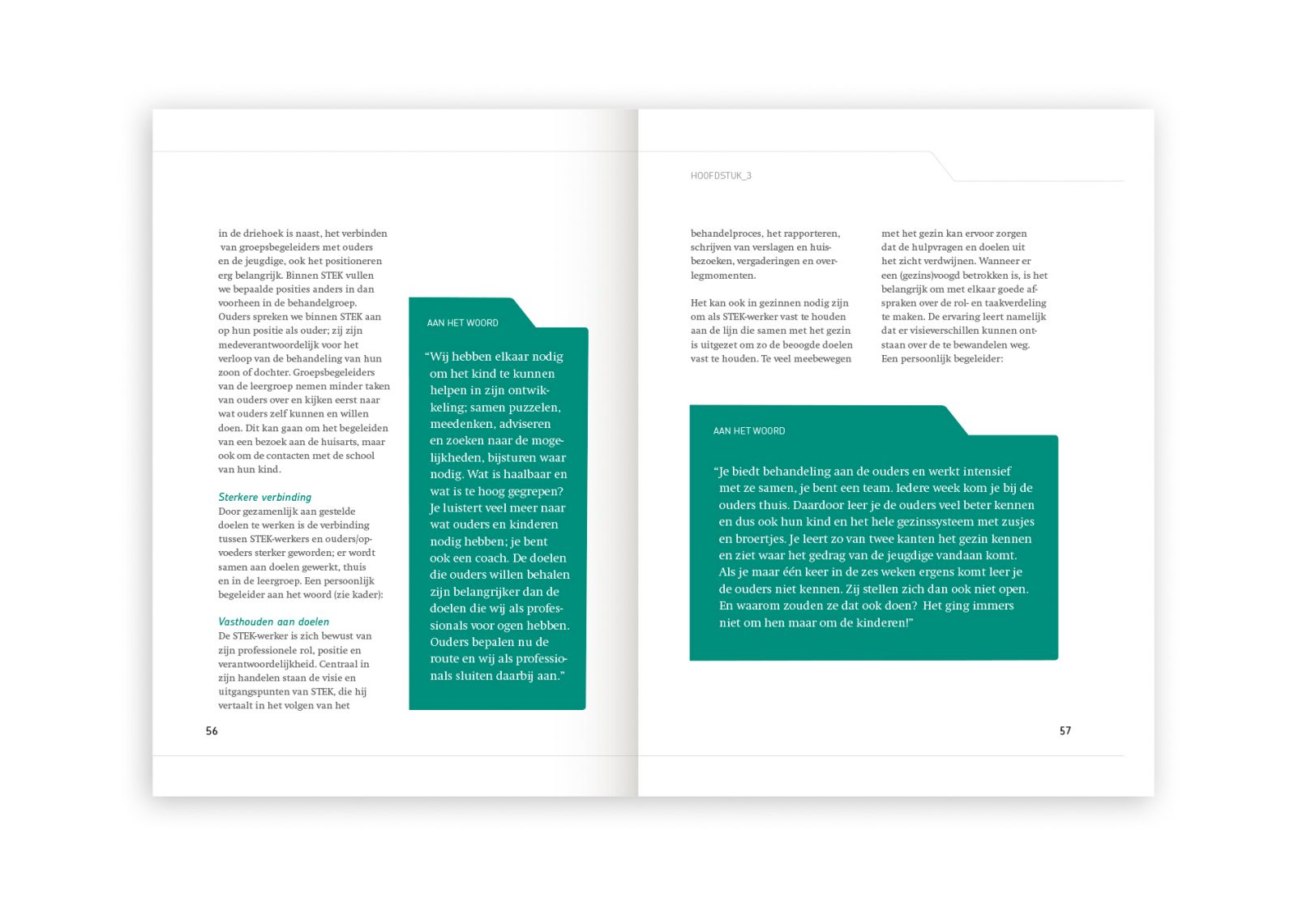 De publicatie verteld over de gedachte achter STEK, de tot standkoming en de werkwijze van dit nieuwe behandelaanbod. Bij dit boekje hoort tevens een korte documentaire waarin ouderparen en hun kinderen vertellen over ervaringen.